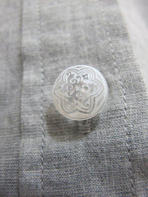 ボタンはジャケットでも好評だったドイツ製の彫刻ボタンの小さい物